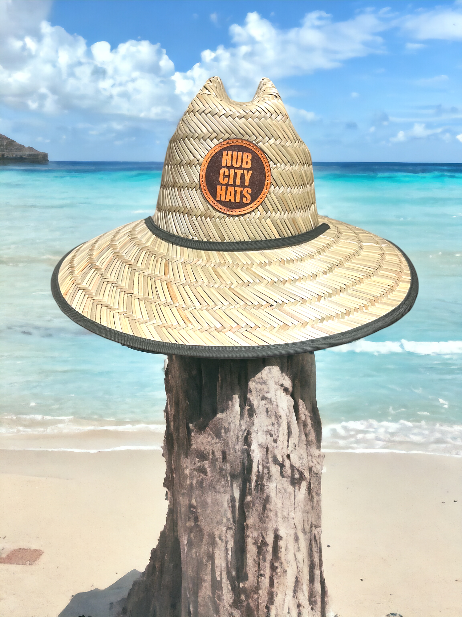 Get ready for summer with our wide brim lifeguard style straw hats. These are available with a dark green or American flag underbrim and a drawstring strap to keep the hat in place. Available with any of our custom leather patches sewn on.